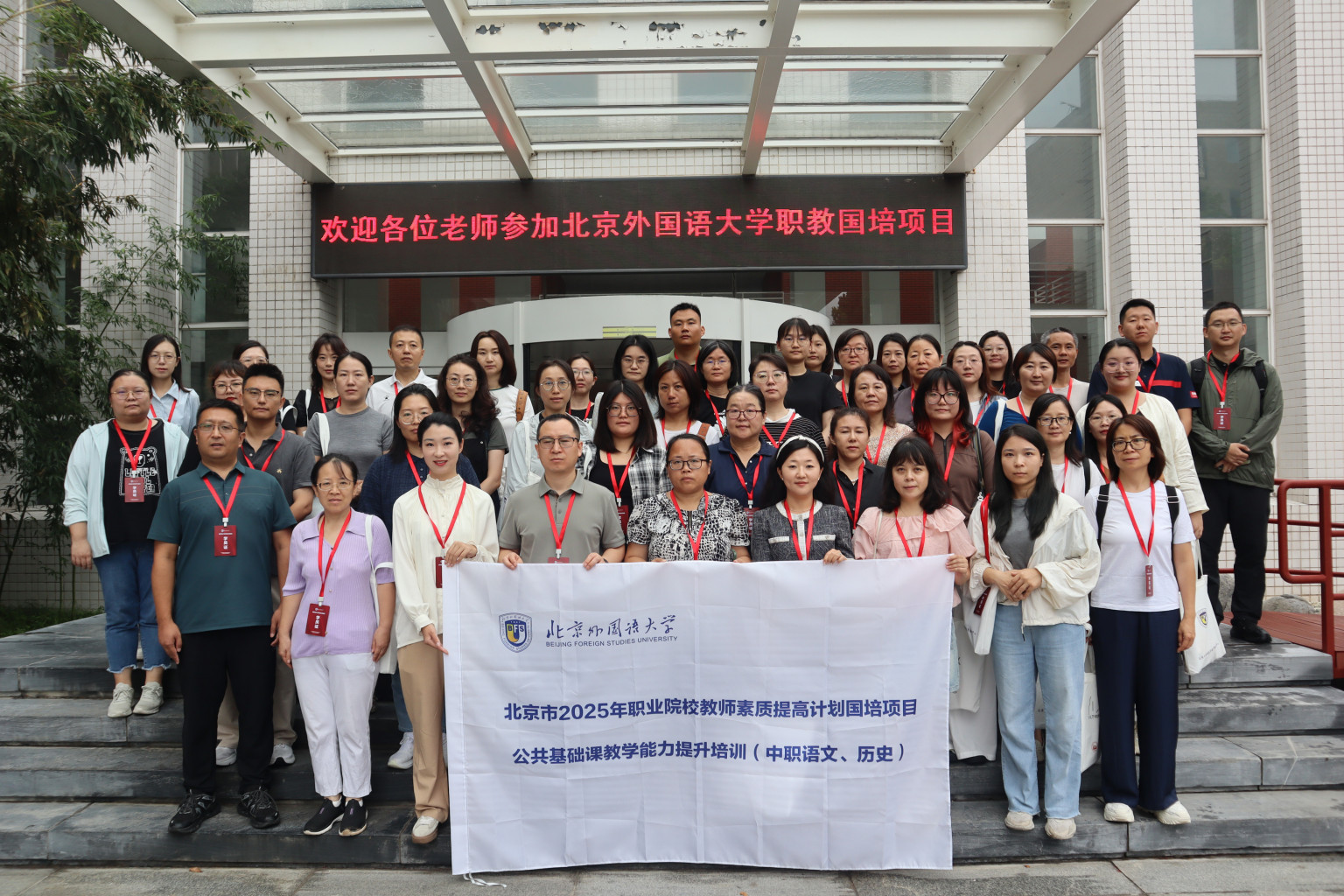 2025年8月18日至28日,由北京市教育委员会、北京市教师发展中心主办,北京外国语大学承办的“北京市2025年职业院校教师素质提高计划国培项目——公共基础课教学能力提升培训(中职语文、历史)”顺利结业。来自北京市各中职学校的56名语文、历史教师通过为期10天的培训,共探中职语文、历史教学发展新未来。