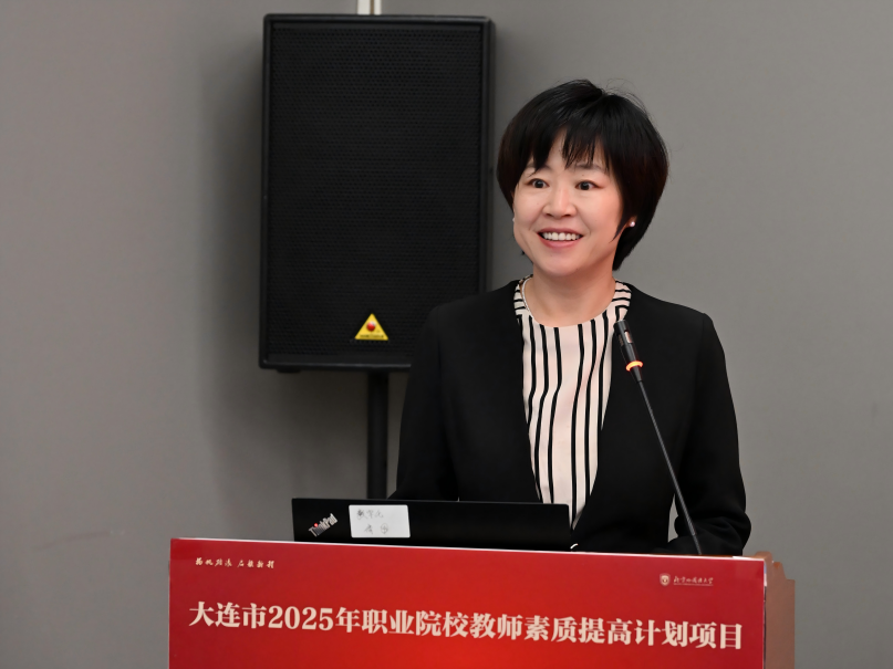 北京外国语大学国家级职业教育“双师型”教师培训基地办公室主任、外研社职教分社社长李淑静首先对本次培训的主办方大连市教育局给予的信任和支持表示感谢,同时作为承办方对各位老师表示热烈欢迎。她强调,2025年是贯彻全国教育大会精神、落实教育强国建设规划纲要的关键之年,锻造“双师型”教师队伍是筑牢教育强国根基的核心任务,北外将充分发挥专业优势和平台作用,依托十余年国培经验,为各位教师带来兼具政策高度与实践深度的研修内容,既能精准把握职教政策方向,又能扎实掌握实用教学技能,为大连市职业教育高质量发展贡献智慧与担当。