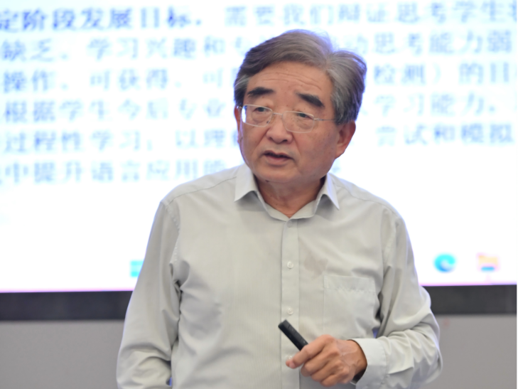 北京外国语大学张连仲教授作开班首讲。他首先阐述了新时代职业外语教育的新使命和新特点,提出在新质生产力和AI技术发展的时代背景下,新时代外语教育要顺应时代变革,注重培养学生的语言能力。随后他提出,教师要基于学情确定阶段发展目标,活用教材内容,设计教学活动,在教学过程中落实能力培养,在实践中提升学生的语言应用能力和素养。同时他强调,新时代职业外语教育核心观念是以人为本,遵循“朴实目标”“扎实教学”和“落实评价”的原则,勉励参训教师保持积极开放的心态,持续学习精进,实现自我提升。