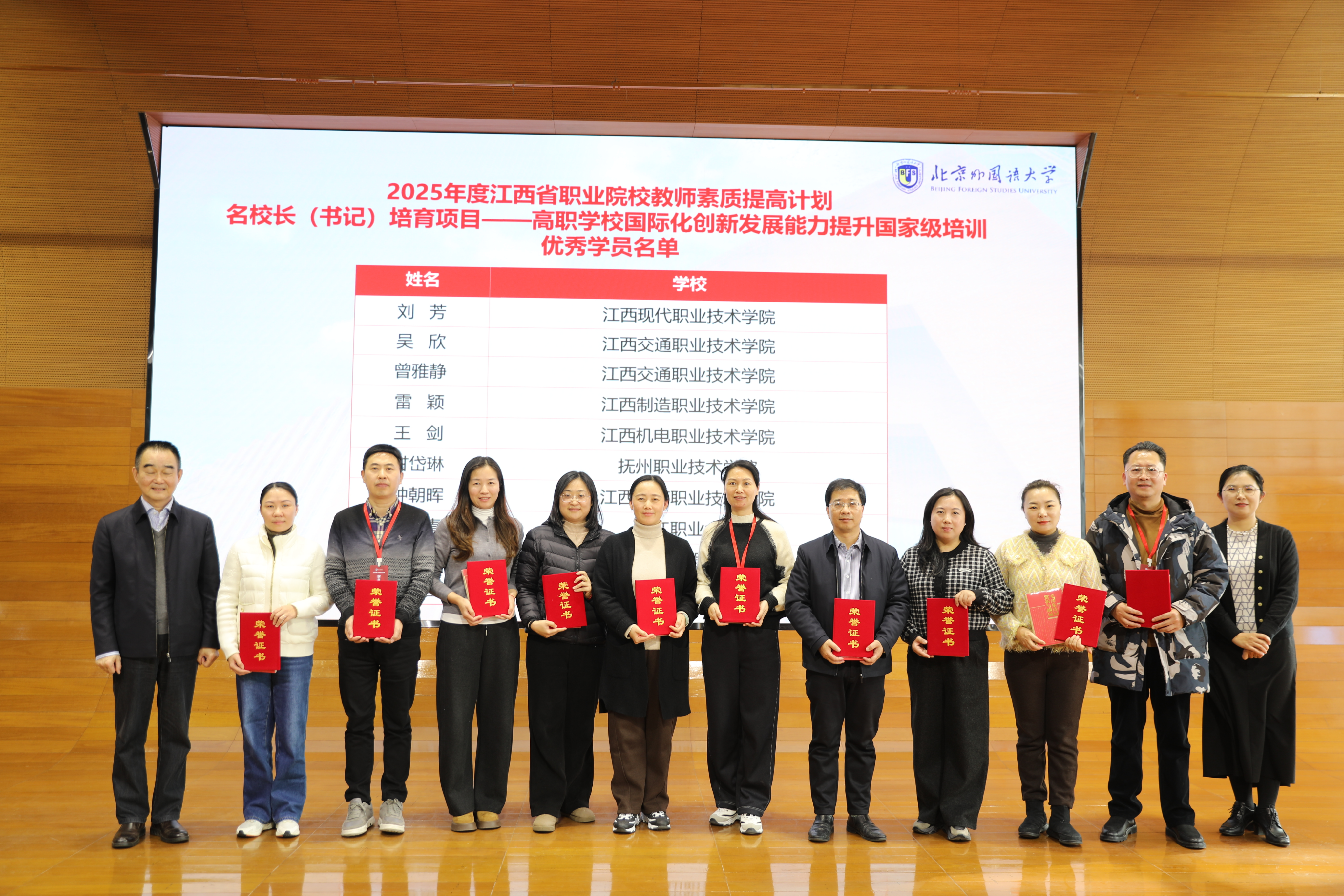 2025年12月21日至12月28日,由江西省教育厅主办、北京外国语大学承办的“2025年度江西省职业院校教师素质提高计划名校长(书记)培育项目——高职学校国际化创新发展能力提升国家级培训”圆满结业。来自江西省33所高职院校的书记、校长齐聚北京,一同把脉职业教育国际化发展趋势,共话职业院校国际化创新发展新未来。