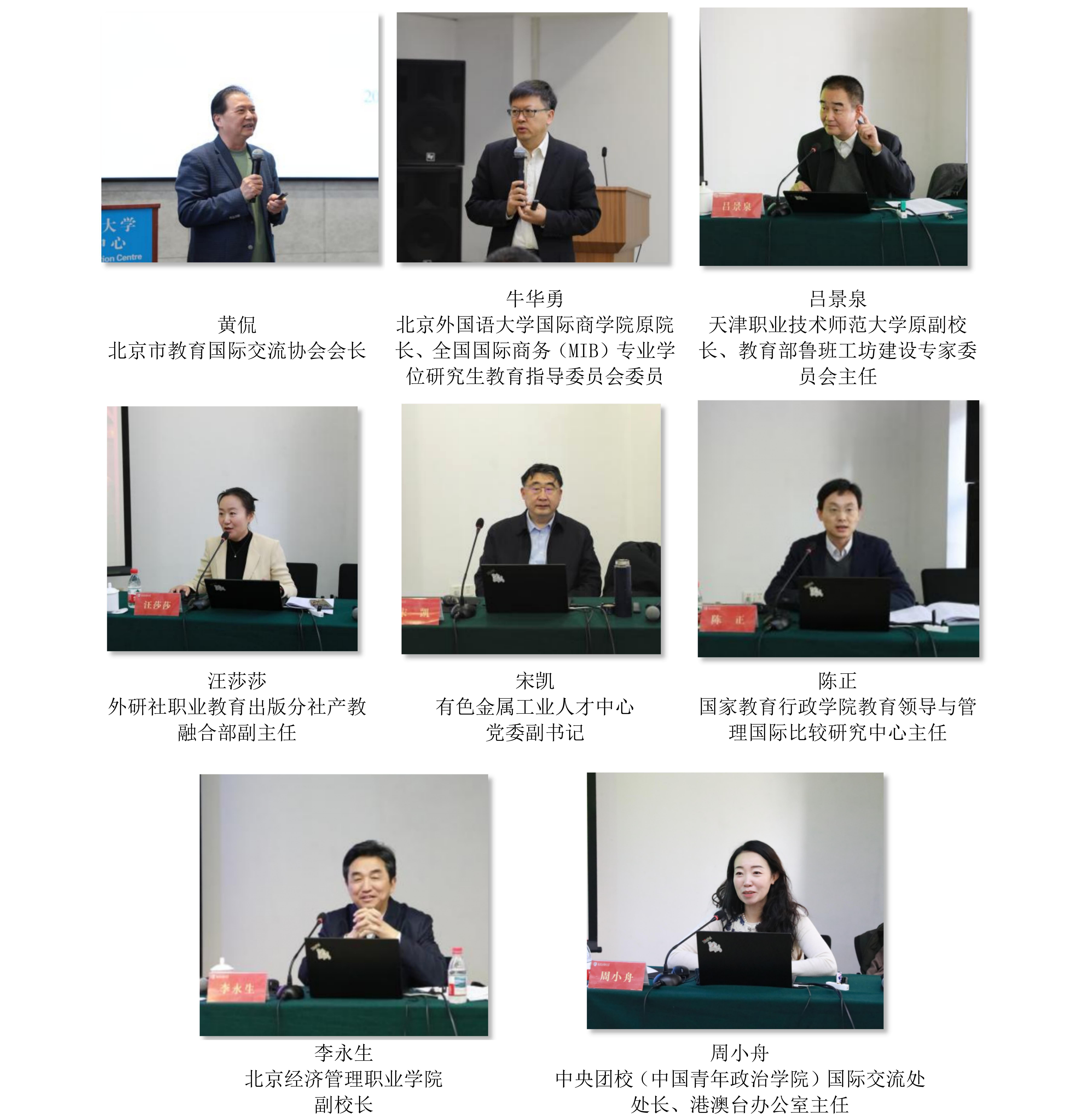 本次培训特别邀请北京市教育国际交流协会会长黄侃,天津职业技术师范大学原副校长、教育部鲁班工坊建设专家委员会主任吕景泉,北京经济管理职业学院副校长李永生,国家教育行政学院教育领导与管理国际比较研究中心主任陈正,北京外国语大学国际商学院原院长、全国国际商务(MIB)专业学位研究生教育指导委员会委员牛华勇,中央团校(中国青年政治学院)国际交流处处长、港澳台办公室主任周小舟,有色金属工业人才中心党委副书记宋凯,外研社职教分社产教融合部副主任汪莎莎围绕“职业教育国际化办学理论与政策、中外合作办学经验、‘双高’政策意涵、发达国家职教体系、职教出海特征、职业院校国际化管理能力、国际品牌建设”等主题展开分享,帮助参训领导提升国际化办学能力和职教资源集成力。